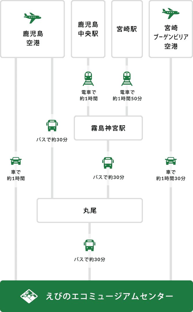 - 宮崎市方面からのアクセス:小林ICより車で45分