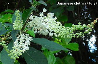 Above is scrub forest including Japanese green alder, Hydrangea paniculata and Rhododendron kiusianum.