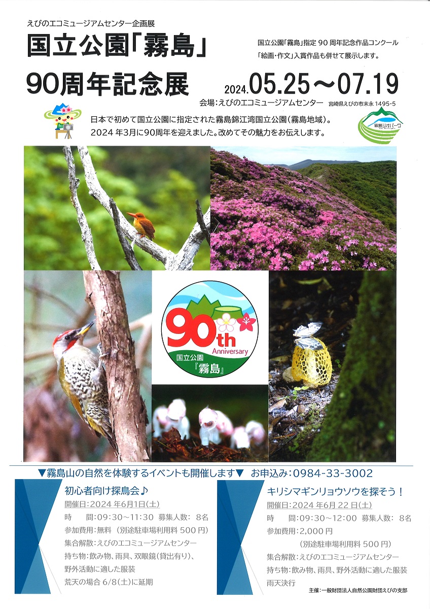 国立公園「霧島」指定90周年記念作品コンクール「絵画・作文」入賞作品も併せて展示します。