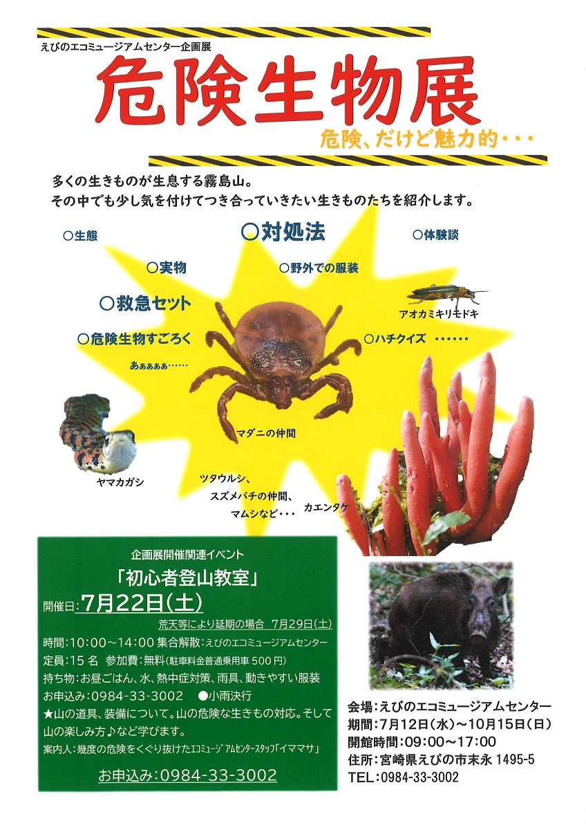 ○生態 ○対処法 ○体験談 ○実物 ○野外での服装 ○救急セット ○危険生物すごろく ○ハチクイズ ・・・・