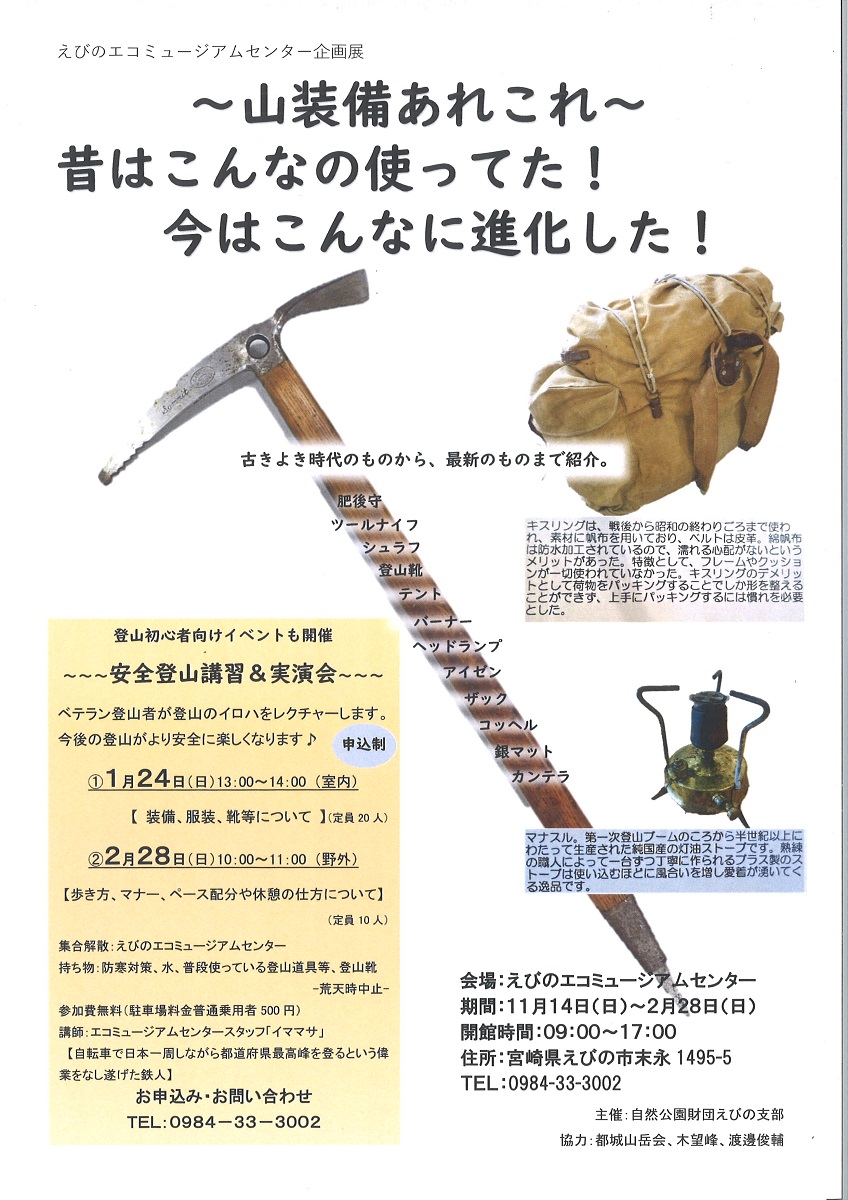 企画展「山装備あれこれ 昔はこんなの使ってた!今はこんなに進化した!」