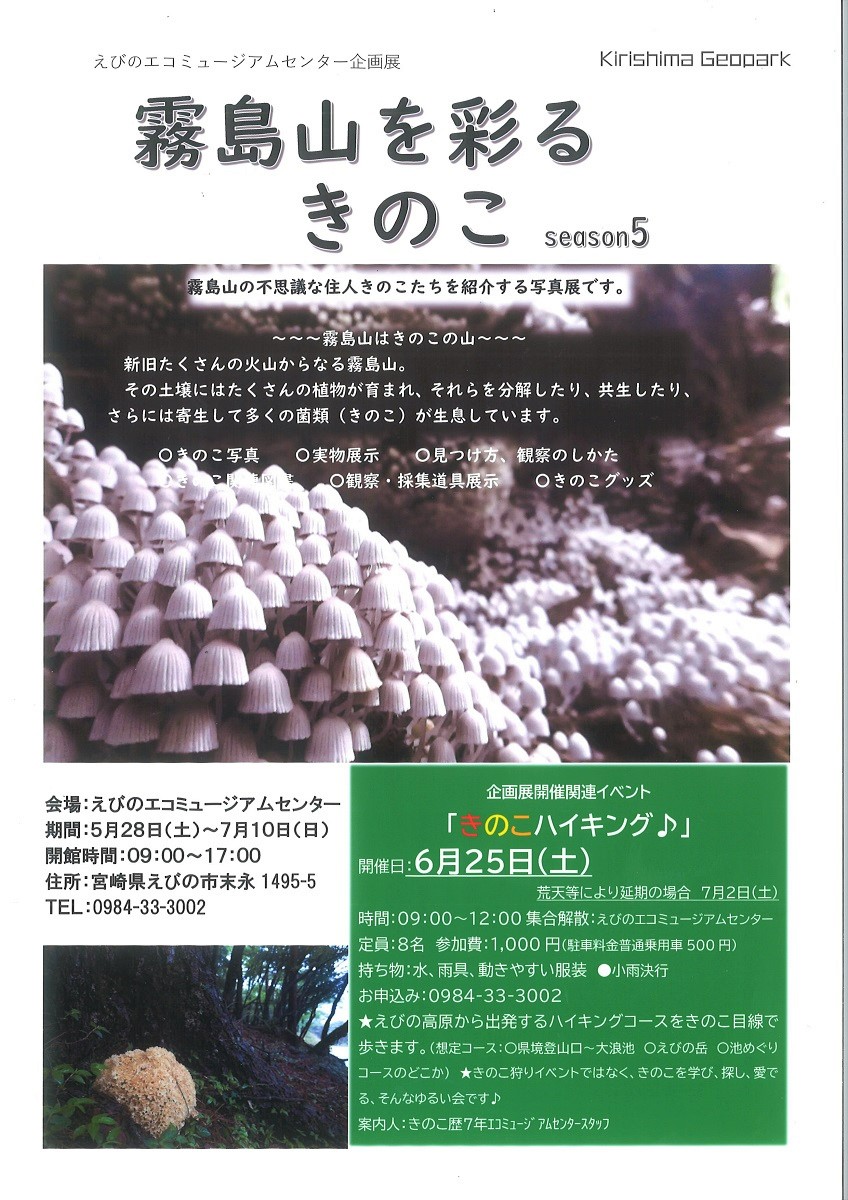 企画展「霧島山を彩るきのこ season5」開催のお知らせです。