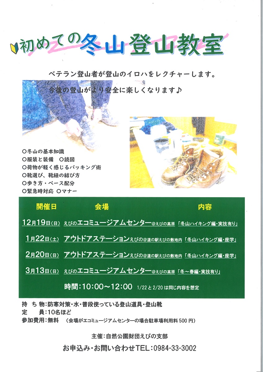 初めての冬山登山教室 「冬山ハイキング編・(実技あり)」