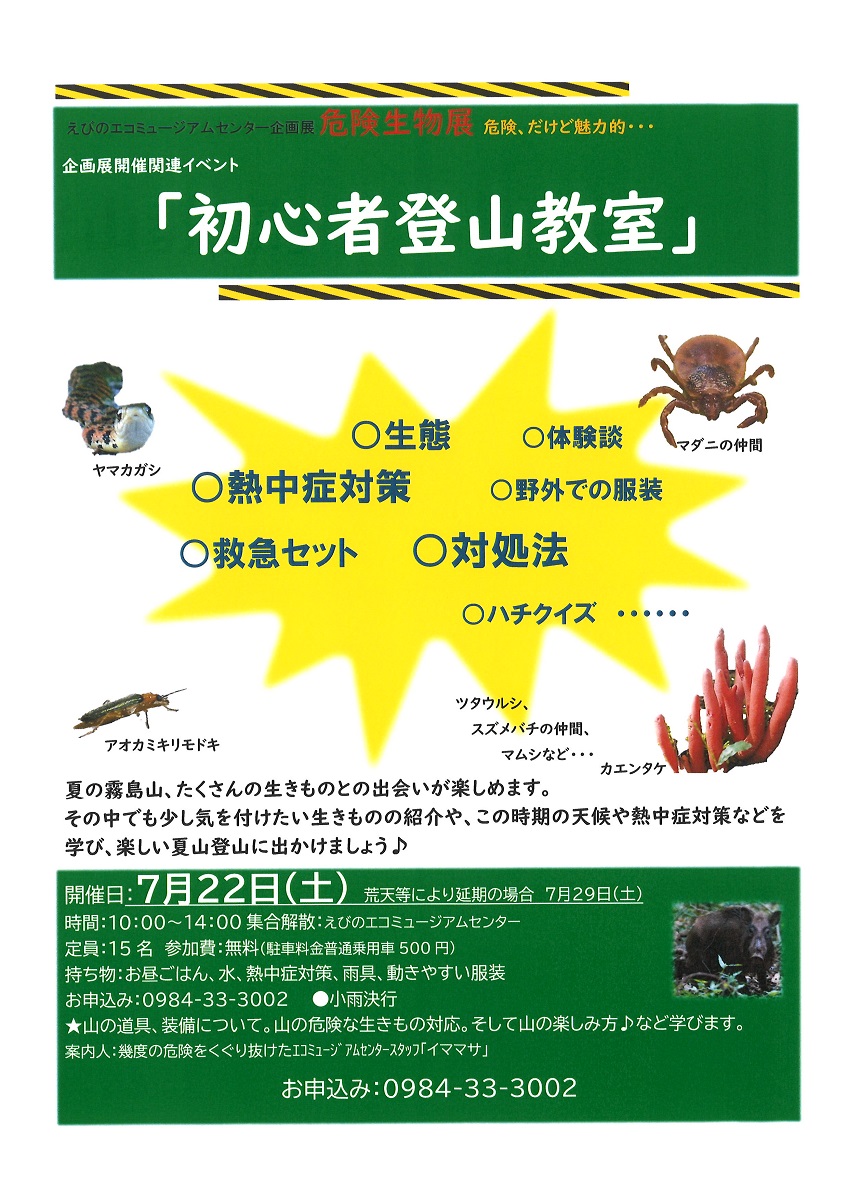 その中でも少し気を付けたい生きものの紹介や、この時期の天候や熱中症対策などを学び、楽しい夏山登山に出かけましょう♪