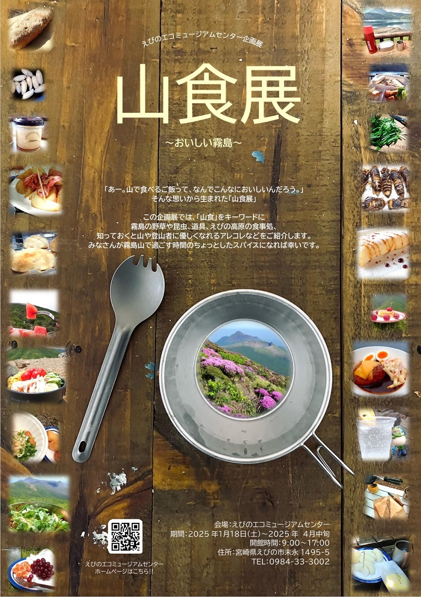 この企画展では、山食をキーワードに霧島の野草や昆虫、道具、食事処、知っておくと山や登山者に優しくなれるアレコレなどをご紹介します。