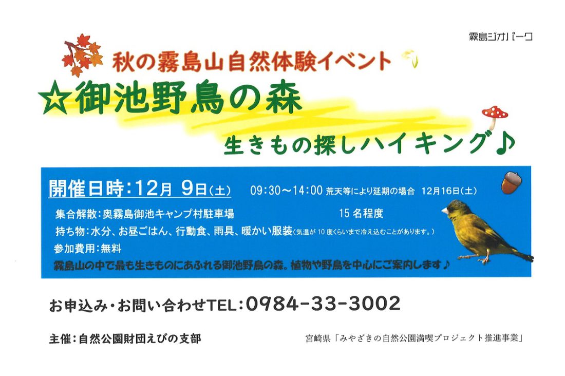 霧島山の中で最も生きものにあふれる御池野鳥の森。植物や野鳥を中心にご案内します♪お申込みお待ちしております。