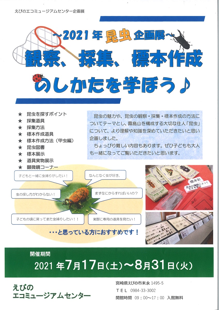 昆虫企画展「観察、採集、標本作成のしかたを学ぼう♪」開催中