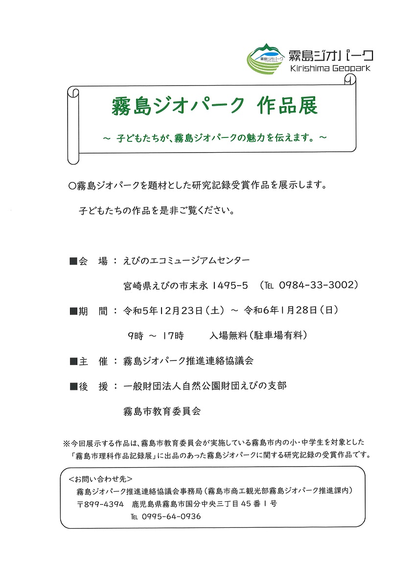 〇霧島ジオパークを題材とした研究記録受賞作品を展示します。
